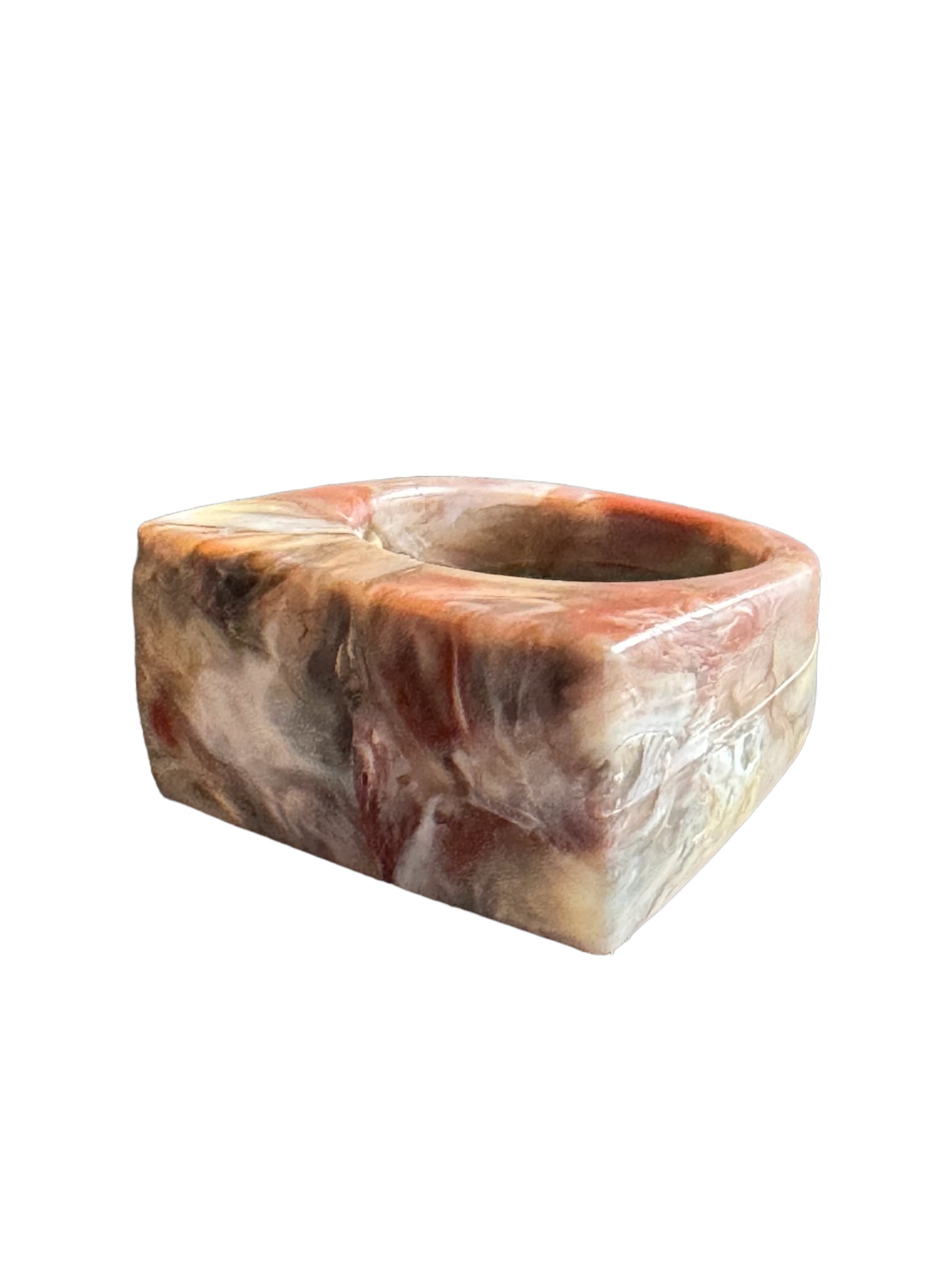 Up-cycled Polypropylene ring. Molten to perfection. The marbled structure gives each individual piece a unique character.